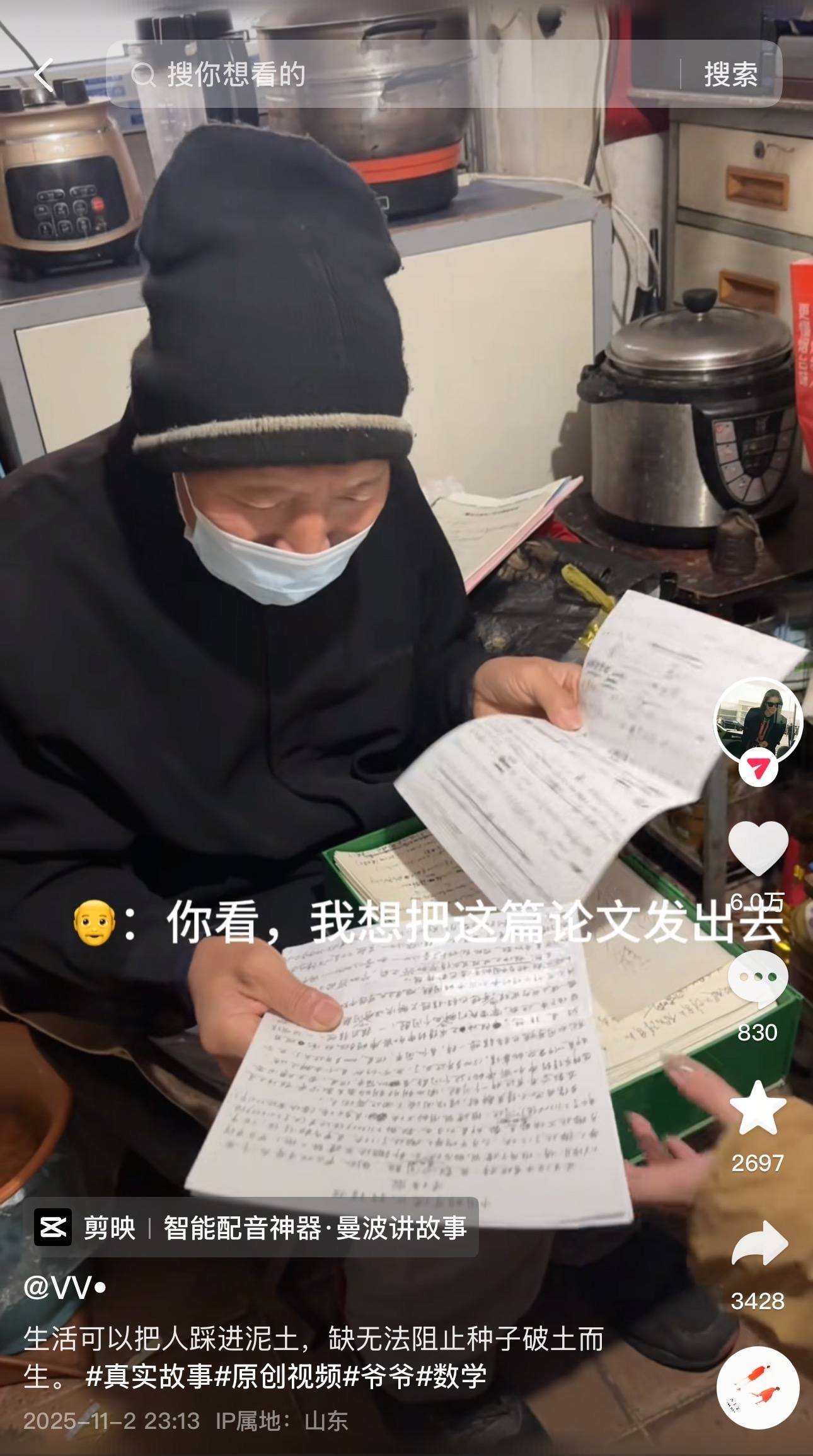 老东说念主的愿望是发表一篇论文。图/受访者酬酢账号